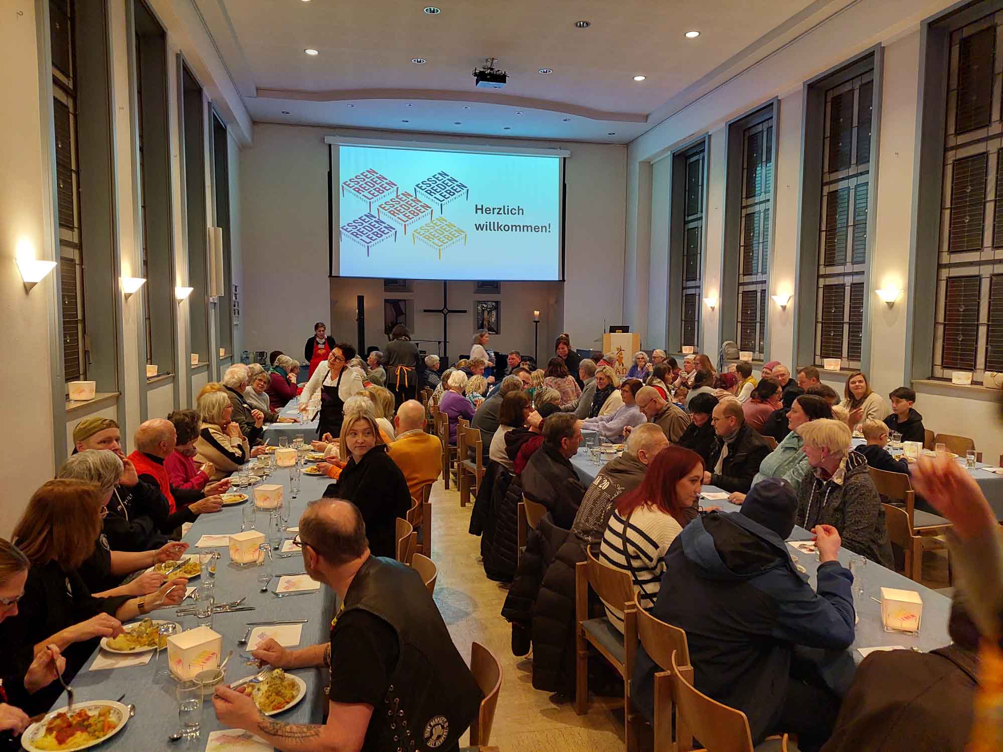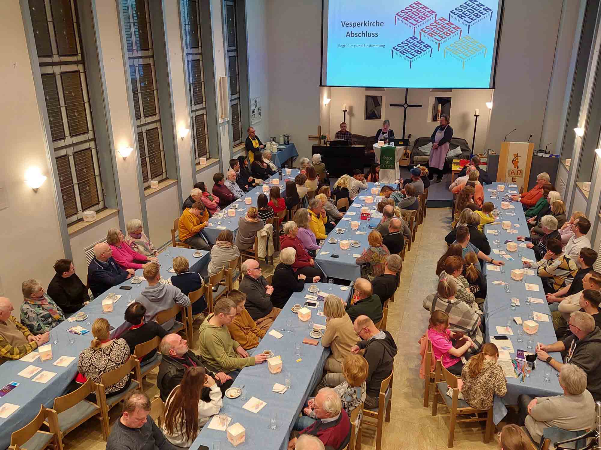 In unserer Vesperkirche begrüßen wir alle Menschen unserer Stadt. Egal wie alt sie sind, wo sie herkommen oder an was sie glauben. Sieben Tage lang bieten wir jeden Abend ein kostenfreies, warmes Essen. Gleichzeitig wollen wir Begegnungen und Gespräche zwischen Menschen ermöglichen, die sich im Alltag vielleicht nicht getroffen hätten. Unsere Arbeit wird ausschließlich durch Spenden und den unermüdlichen Einsatz zahlreicher ehrenamtlicher Helfer*innen ermöglicht.