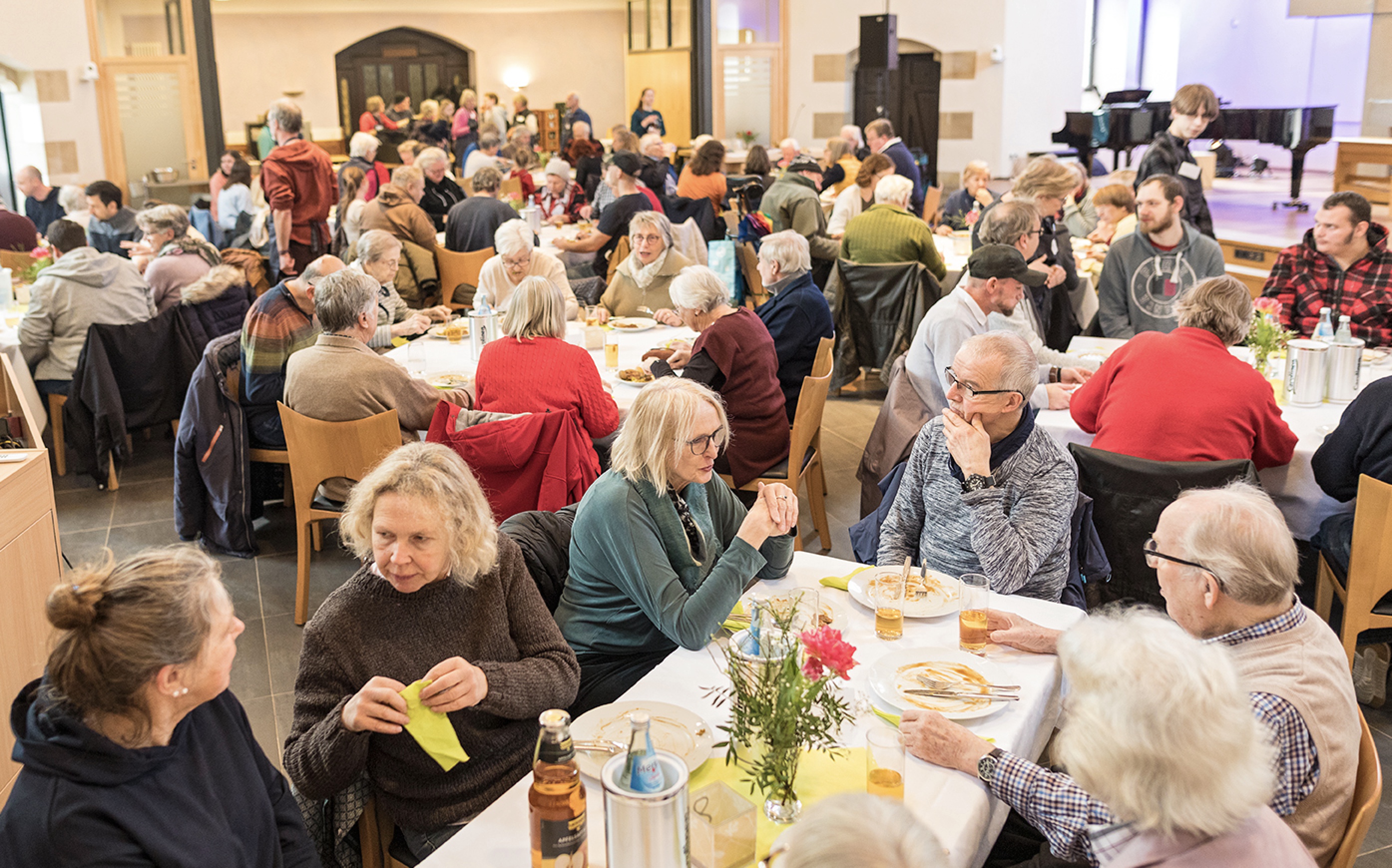 Sie schafft einen offenen Raum, in dem Menschen unabhängig von Herkunft, Einkommen oder Lebenssituation willkommen sind. Bei einem warmen, kostenlosen Mittagessen entstehen Begegnungen, Gespräche und Gemeinschaft auf Augenhöhe. Die Vesperkirche lindert materielle Not, wirkt Einsamkeit entgegen und stärkt das soziale Miteinander. Spenden ermöglichen Mahlzeiten, Infrastruktur und begleitende Angebote – und damit konkrete Hilfe, die ankommt.